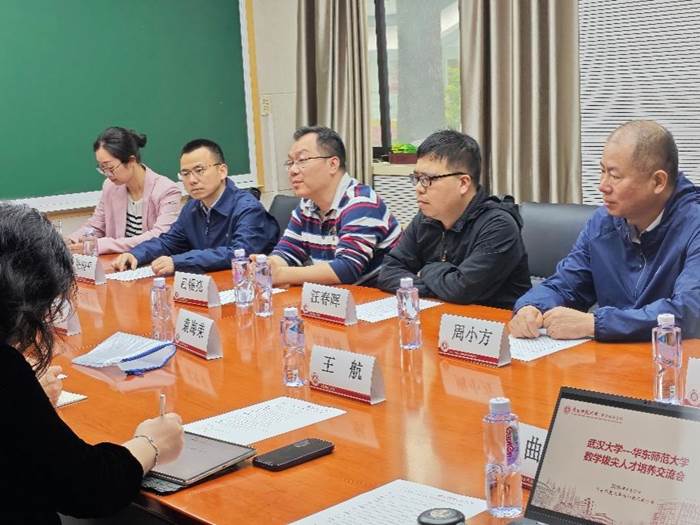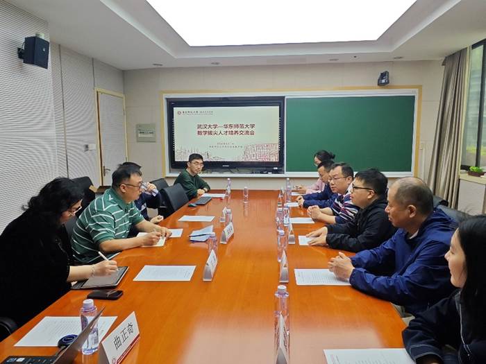 在学生报告的同时,两院教师团队也围绕拔尖人才培养展开了交流。武汉大学数学与统计学院副院长吕锡亮,骨干教师汪春晖、张晓平、周小方及学工办团委书记廖蕾蕾,色播 副院长袁海荣,院长助理朱萌和拔尖班班主任王航、晋海波参加了研讨。双方就专业基础课程教学、拔尖班教材编写、高水平科研训练、拔尖学生选拔和拔尖班动态调整、培养方案制定、学生个性化发展等问题展开了深入讨论,加深了对拔尖人才培养规律的认识,也为后续完善拔尖人才培养体系提供了支持。