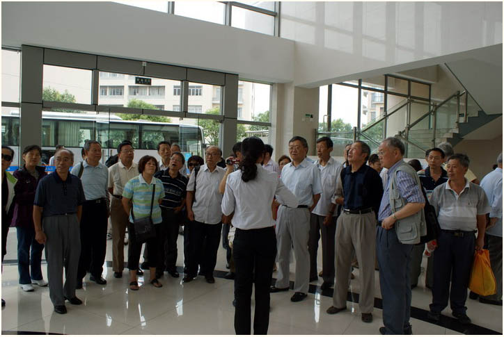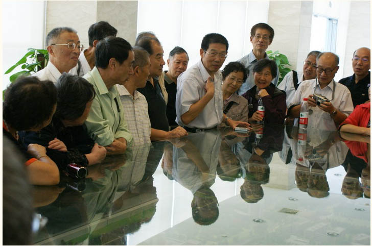 4. 参观:选点闵行新校区。两辆大巴载着近百名老同学,有说近的有说远的,一路欢声笑语。在这里值得一提的是,一位女同学早上没有赶上大巴车, 为了及时到现场,竟然搭了一辆“摩的”匆匆忙忙赶到了闵行新校区,据说她是生平第一次乘二等“摩的”车,可见同学们对此次聚会的诚心。参观中, 大家认真细致听讲,边看边谈边交流,不放过一点时间和机会。到数学楼参观时更有重返家园的感概,今非昔比,大家为母校和数学系的发展欢欣鼓舞。