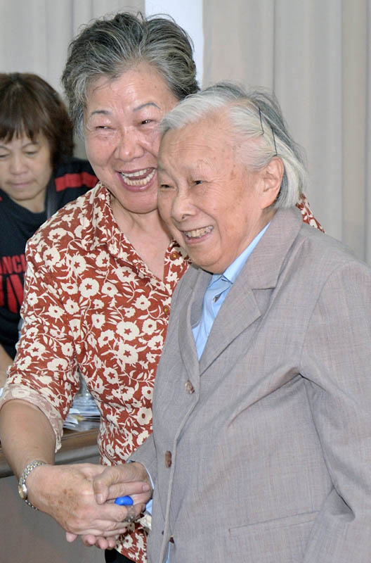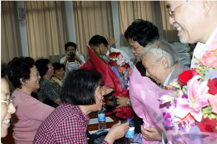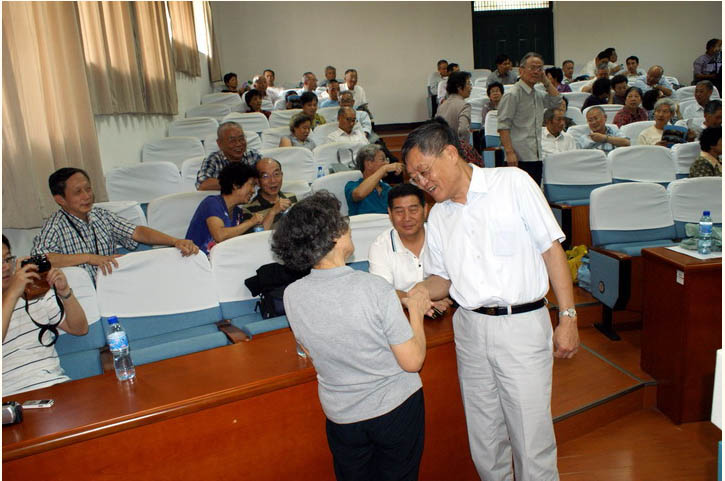 数学系的赵小平书记介绍了系里的变化和发展,令大家欢欣鼓舞。老教授李汉佩先生面带健康的笑容说:“非常高兴见到大家,一次就见到这么多的老学生,太好了!” 两句话赢得了一阵掌声。老同学们在发言中怀着深情向校、系领导和老教师们深深地鞠了一躬。