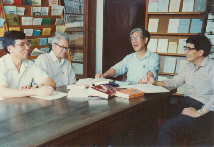 程先生、曹先生和《数学分析》第一版教材编写组部分老师们在一起