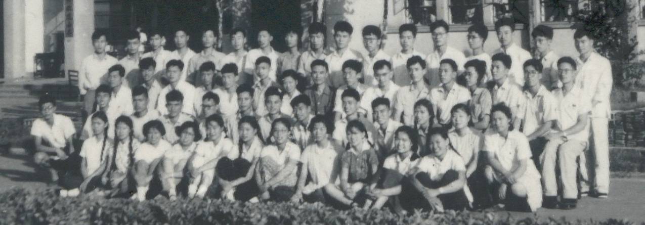 当时由于时间仓促,许多同学没有通知到,因此很不完整。这张照片历经“文革”劫难,尚能幸存,已是奇迹。4个涂在老师脸上的黑点便是当时迫害的见证。老师们坐在第二排,我们请陈志杰老师辨认了一下, 如有不当,希望知情者帮助更正。