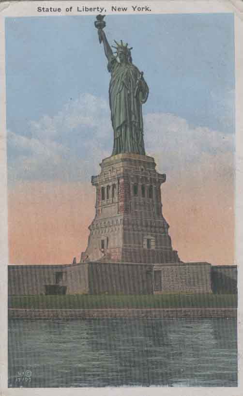 图12(左):巴托尔迪 美国(1985);  图13(右):美国邮资明信片(1956)