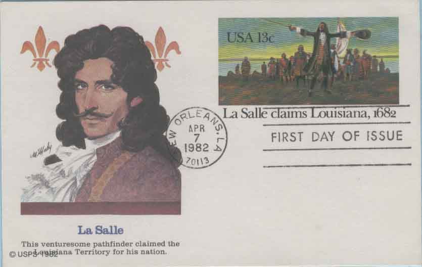 图16:法国探险家喇沙(美国邮资明信片,1982)