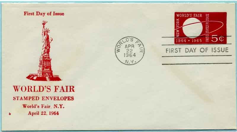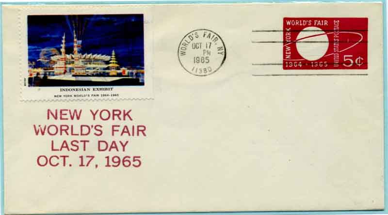 10.  1964-1965年纽约世界博览会(1964/4/22,开幕6个月,休整6个月,再开放6个月,至1965/10/17闭幕,36国参加,参观者5167万), 图6分别是1964年开幕日纪念邮资封和1965年闭幕日纪念邮资封。